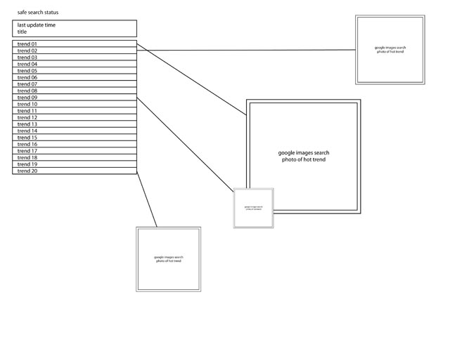I wrote a program that gathers the most recent information from different sources online, then displays it in the form of text and a related picture on screen. The user can then interact with the search term in order to learn more about recent activity including if it has become more or less popular over the last hour.